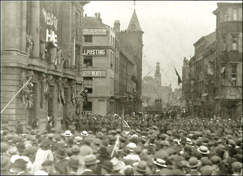 Hull Citizens celebrated the end on the war on the 11th November 1918. Bells pealed from the church towers; the shipyard closed down until Thursday; munitions works closed all day; and schools that were not already closed by the ‘Spanish Flu’ epidemic got a half day holiday. The streets were thronged with people all afternoon and evening. There were intermittent displays of fireworks, despite them being viewed by some as wasteful. The joy was somewhat restrained because few families in the town had escaped bereavement. Rationing was relaxed in the run-up to Christmas. 12 days Christmas leave was granted to all men serving at home. On December 14th there was a relaxation of lighting restrictions and early closing of shops. In a special edition of the Hull daily Mail, published at 11am, on the 11th November 1918, it was proclaimed to be:-