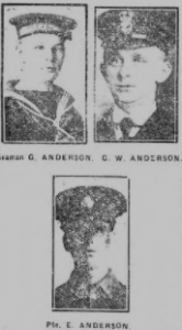HIS TWO BROTHERS SERVED AT SEA. HIS BROTHER, GEORGE ANDERSON, ROYAL NAVAL RESERVE, DIED ON 23/04/1922.