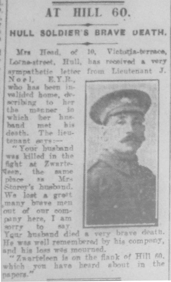 HIS DEATH AND PHOTOGRAPH WERE PRINTED IN THE HULL DAILY MAIL ON THE 19TH MARCH 1915. *