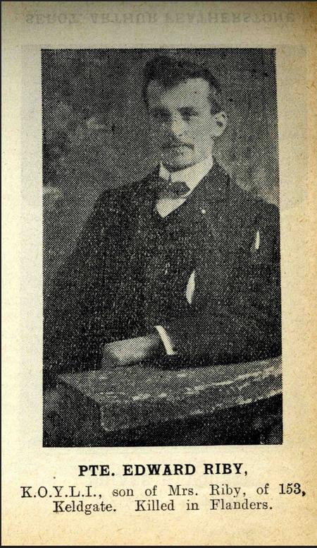 Private Edward Riby, King’s Own Yorkshire Light Infantry. Date of death: 31/07/1915 (aged 34)