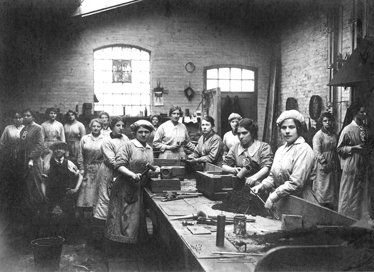 Demographically, Hull’s population fell by 45,000 people during the war, such was the rate of male enlistment into the armed services. Women replaced many men in the workplace, and in Hull, women found new jobs in the Post Office, railways, trams and factories. The Hull Daily Mail ran articles on women’s war work, saying “they were being trained in ship building, the dock yard, transport and munitions,” as well as growing food, postal work, telegraph messengers and even taxi driving. The National Union of Women Workers, organised voluntary patrols in Hull, acting as a ‘morality’ police force, curbing crime and prostitution. ‘Joseph Rank Ltd’, employed nearly 3,000 women, in wheat production. ‘Rose Downs and Thompson’ Munition’s factories, employed 359 women, 13 under 18 years of age and 341 between 18 and 51 years old. Many local businesses were badly affected by the loss of manpower. Some used women or injured ex-servicemen in place of the men they had lost, while others had to reduce their opening hours because of staff shortages. Women were paid only half the wage of equivalent male workers. Irish labourers got 50/- per week for helping with the harvest. The ‘Women on the Land’ Committee reported that women between 18 and 40 got 15/- per week during their 3 weeks training, then 18/- per week once trained, plus a free uniform. Munitionettes received 32/- a week.