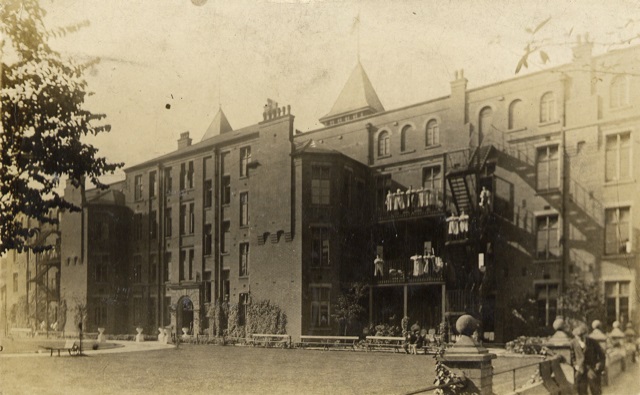 The first hospital organised by Lady Nunburnholme (Lady Marjorie Wynn-Carrington), was the Naval Hospital at Hull’s Western General Hospital (now called the Hull Royal Infirmary). It was located at Argyle Street, Hull, next to today’s Hull Royal Infirmary. Originally opened in 1914, to help Hull’s poor and sick people from the nearby Workhouse, she persuaded the Board of Guardians to donate the East and West wings of the hospital to help front line casualties arriving at nearby Paragon Station on special ambulance trains. In April 1917, it became a naval hospital for injured sailors. The Naval hospital was equipped by Lady Nunburnholme and Lord Glenconner and staffed by trained Voluntary Aid Detachment (VAD) nurses. It had 220 beds and was initially used as a military hospital for the sick from the Humber Garrisons, but by early 1917 had been entirely taken over by the Navy, receiving a weekly Royal Navy Ambulance Train. It was to be used to treat casualties from the military and navy with the East Riding Territorial Branch of the St John Ambulance Association Voluntary Aid Committee supplying nurses and staff.