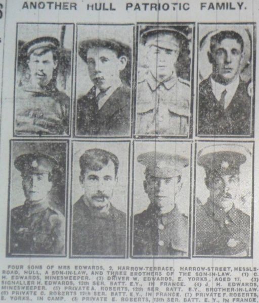 Hull was the major recruitment centre for the East Yorkshire Regiment, but as it was also a major port, a large percentage of the population were already recruited by the Merchant Navy, the fishing Fleet, the Royal Navy and the Humber Estuary and Coastal