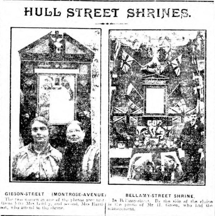 Exmouth Street, Newland Avenue, Hull’s first Street Shrine, (HDM 11/07/1917),