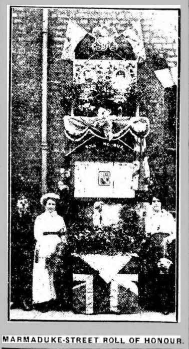 Marmaduke Street – 113 men serving, four killed, three wounded , 1 discharged (HDM 27/09/1916),