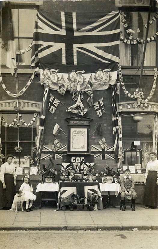 Similarly, “Walker Street to Tadman Street, possessed 30 to 40 shrines – canopied with flags, from end to end and scarcely a house, which was was not gaily dressed with bunting and displaying portraits of the King, Lord Roberts and Lord Kitchener, with Admirals and Generals, of Britain and her Allies. Even the Terrace yards and squares, where the poor families dwell, were a brilliant mass of paper flowers and patriotic mottoes, while every window displayed the photo, either of soldiers, blue jackets, or minesweepers, who have left that house to fight for their country.” It continues, “The remembrance of these (Shrines), filled the hearts of many women who crowded before the shrine and moved them to tears.” (Hull Daily Mail, 25/09/1916)