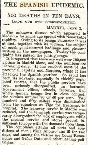 On 29th May 1918, the Hull Daily Mail reported that a type of influenza was sweeping through Spain.