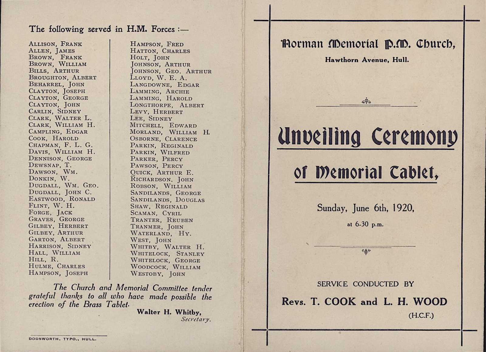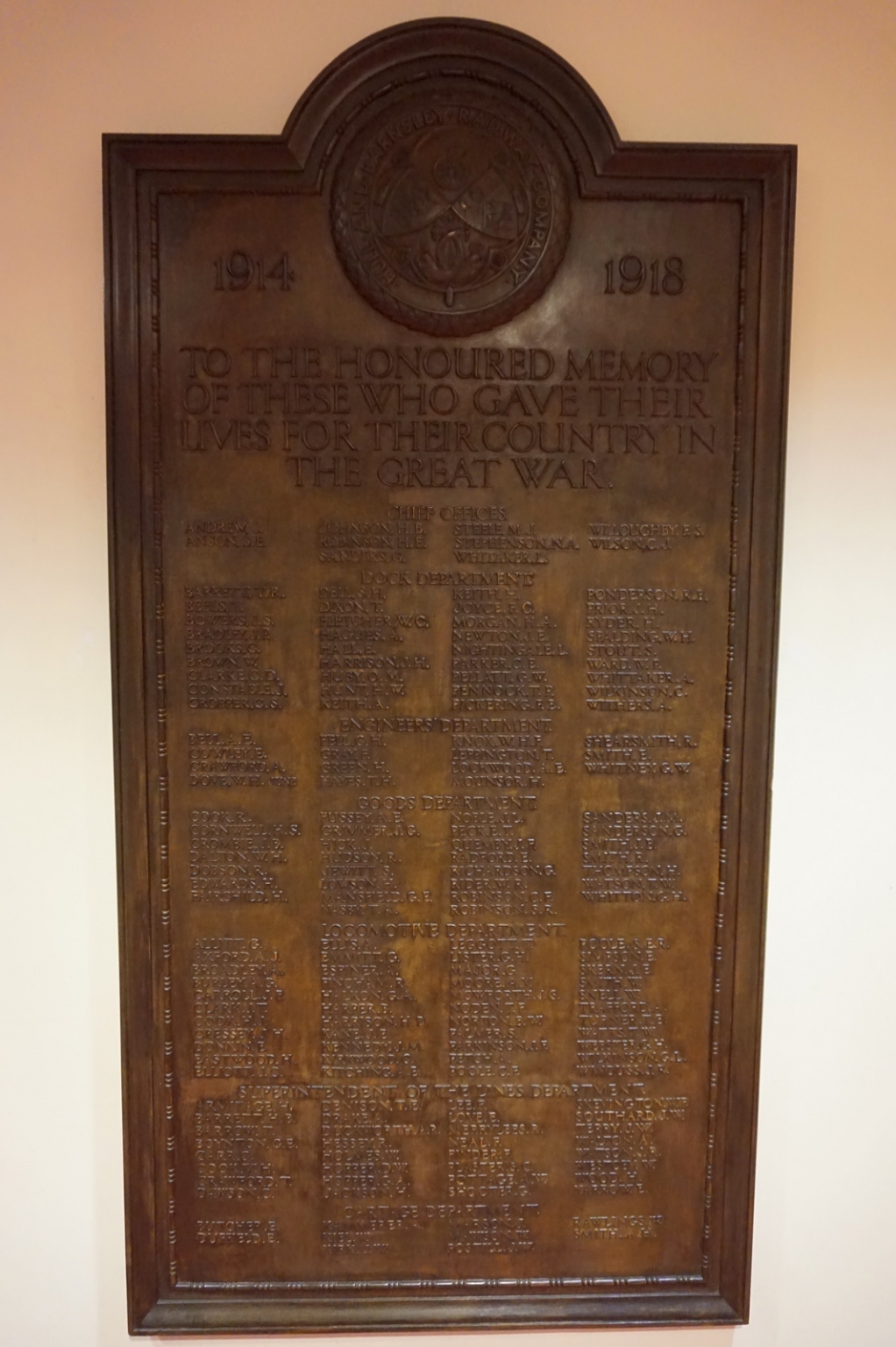 The Hull Post Office raised a white marble plaque at their sorting Office, in St Peter’s Street. The Hull and Barnsley Railway Line commissioned a bronze plaque listing the 178 employees who died in the First World War.