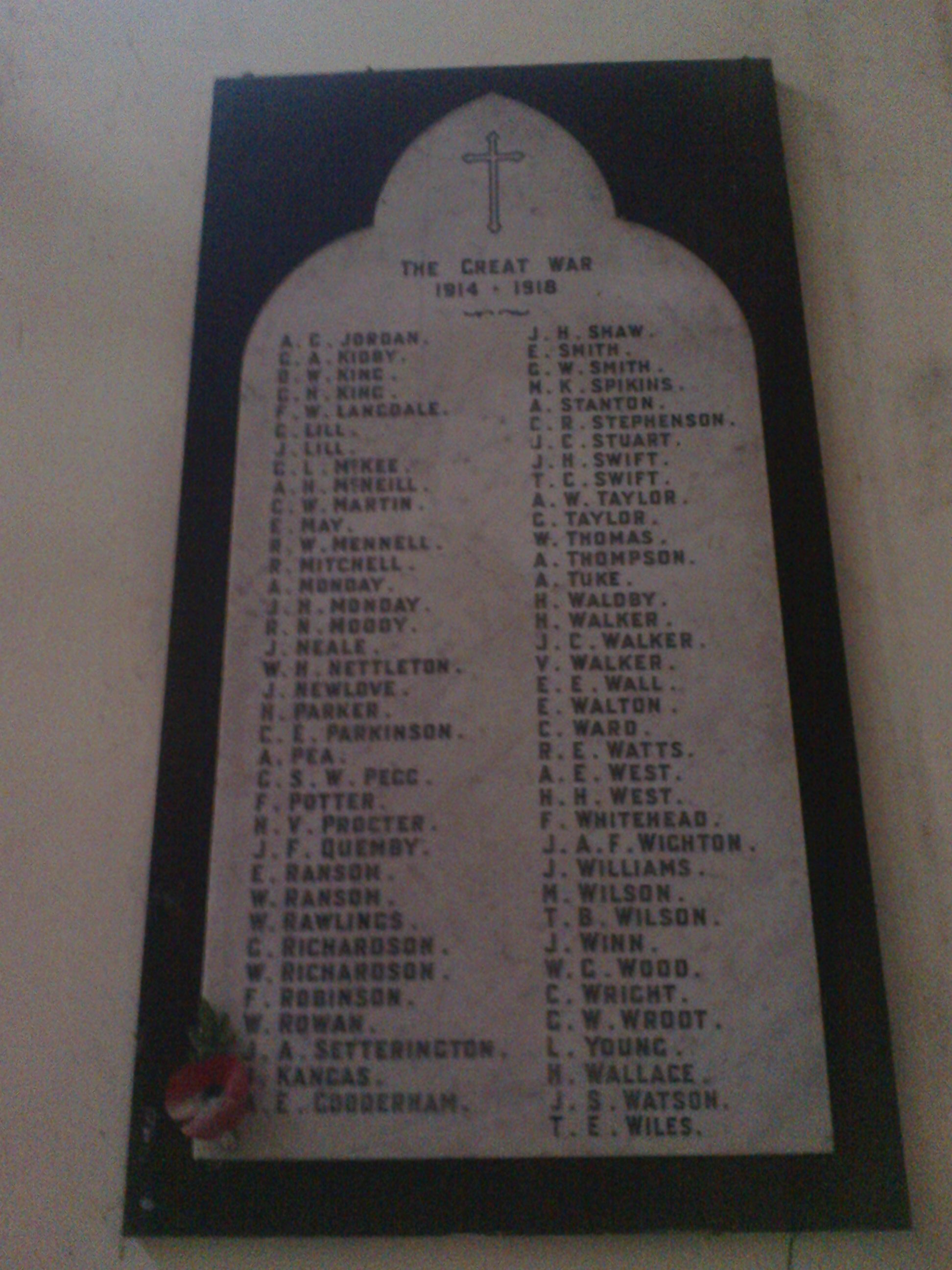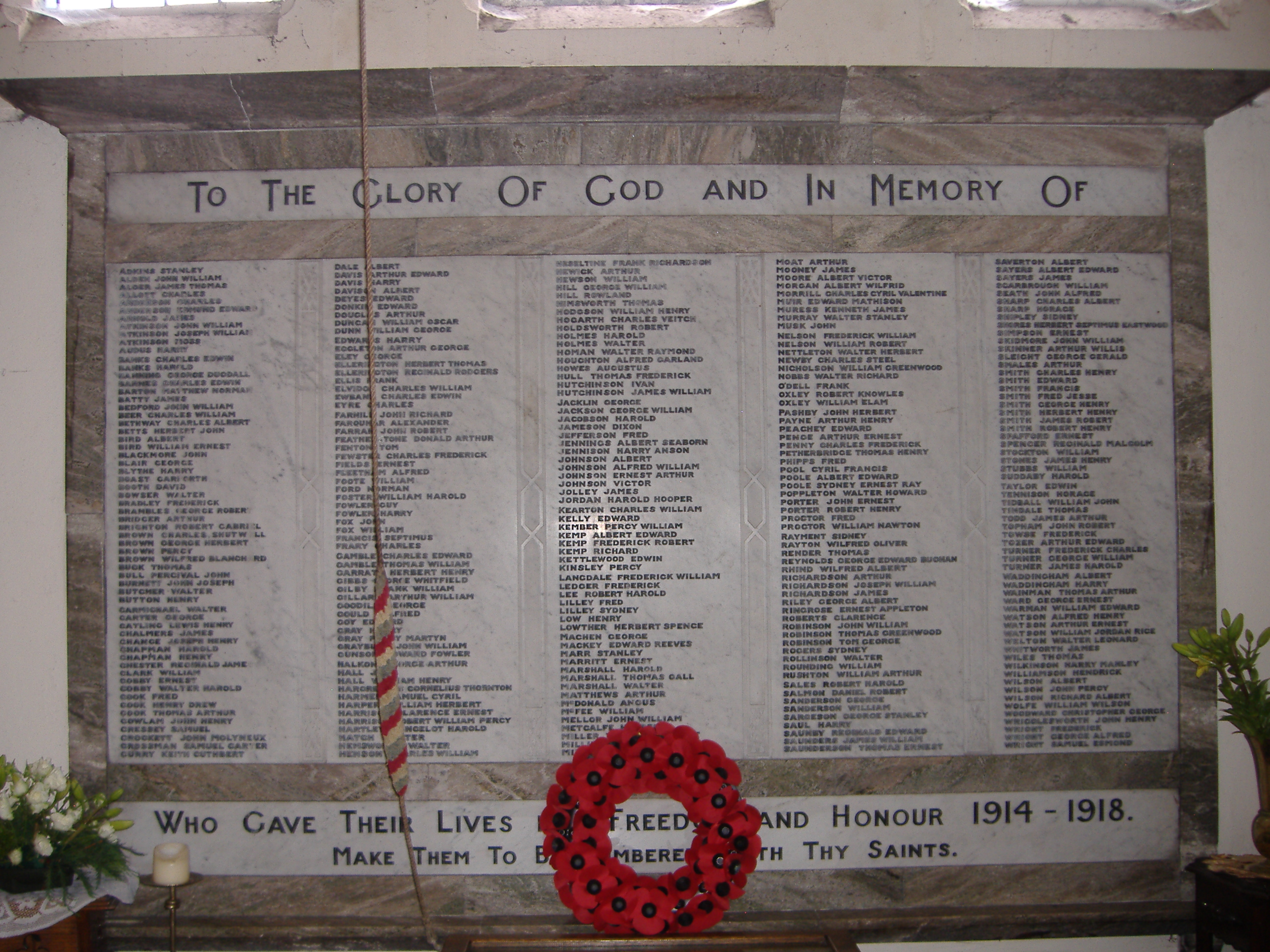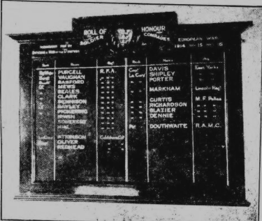 Gillett Street, – its Roll of Honour showed 325 names, of which 24 were dead, by 30/08/1916;