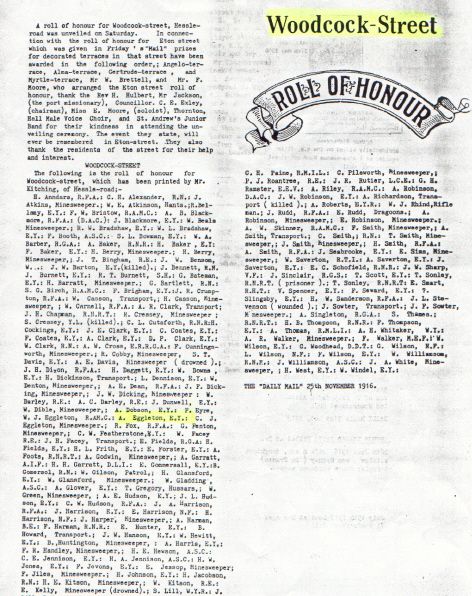 Wilmington Roll of Honour – listed 460 names of those serving (HDM 13/11/1916)
