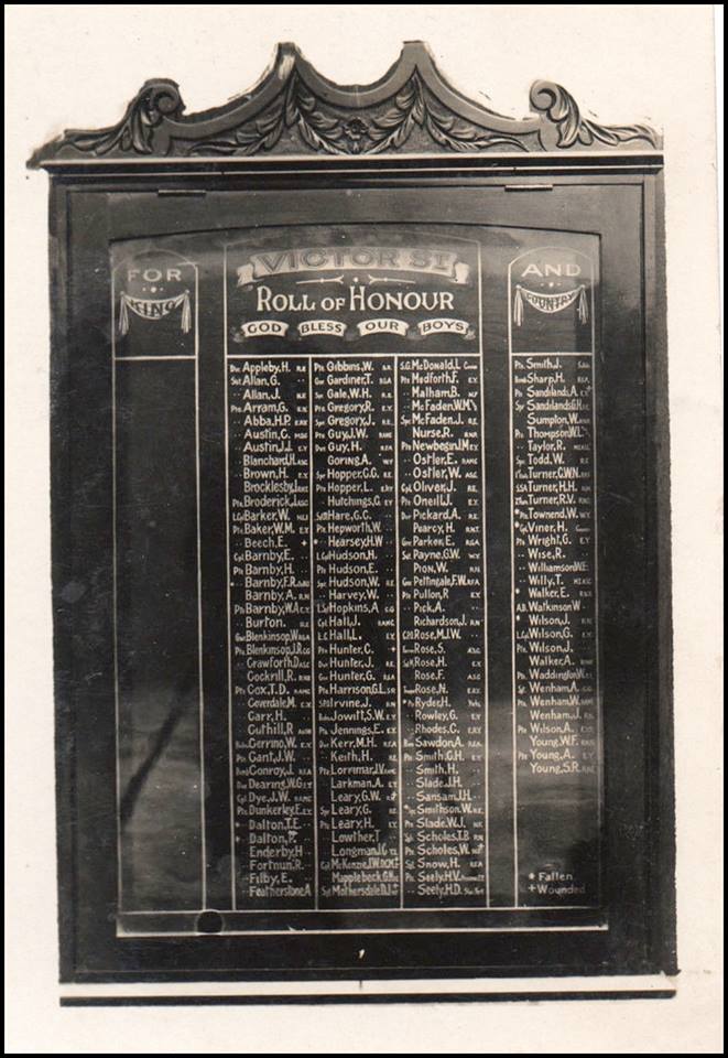 Alexandra Street, Warne Street and Sutton Street shared a memorial, which showed 250 names;