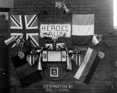 While Street memorials were widely popular, they relied on the goodwill of residents to maintain them. Inevitably these ‘Rolls of Honour’, could not keep pace with conscription, or the movement of men between regiments and armed services, during the four and half years of war. There was also some opposition to the memorials, with people refusing to include their names or saying that the money should be spent on the troops. Some complained that names had been mis-spelt, left out or ignored. Others were forced to move after the death of their husbands and their connection with the street was forgotten. The memorials were often too small to record the increasing numbers of casualties. For example, Bean Street, lost 102 men in the War; Waterloo Street 75; Barnsley Street 59; Walker Street 69, Spyvee Street, 51; and thousands of men died from the Hessle Road, Beverley Road and Holderness Road areas. The declining enthusiasm for war, meant that many Street memorials were not updated after 1916. For example, the current Eton Street, marble memorial, bears little resemblance to its original, which included many more names of men killed in the war. As well as these omissions, there were also spelling mistakes, wrong initials or nicknames used on street shrines which compromised their accuracy. Sometimes the same servicemen appeared on several memorials, as they moved address, or were included by relatives in different streets. Also, as most ‘Street Shrines’ were only designed as temporary structures, they were not long lasting. The Courtney Street memorial was not updated after 1916 and fell into dis-repair. It was discovered years later in a shop attic and re-erected in 1924. Many Street memorials were destroyed during the Second World War blitz, which devastated Hull. Others were lost through slum clearance in the 1970’s and post war reconstruction. For example, the Portland Street Shrine, was removed for safety in 1941, and placed in St Stephen’s church , which was then destroyed in the Blitz, in the same year. Only Waller Street attempted to update their memorial after the war, but this has now disappeared. Just a few examples of Hull Street memorials survive today. Most notably, these are at Sharp Street, Newland Avenue, and Eton Street, on Hessle Road. Some other examples of street shrines are also preserved in the Hull Transport museum. Street Memorials were never repeated during the Second World War.