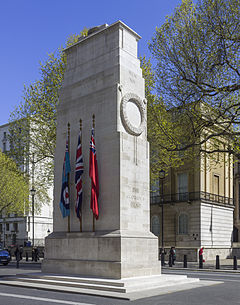 The Cenotaph is a war memorial on Whitehall in London, England. Its origin is in a temporary structure erected for a peace parade following the end of the First World War, and after an outpouring of national sentiment it was replaced in 1920 by a permanent structure and designated the United Kingdom’s official national war memorial.