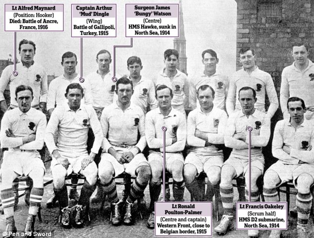 Lieutenant, Francis Eckley Oakeley: Scrum half. Died on HMS D2 submarine when the vessel was rammed and sunk in 1914.