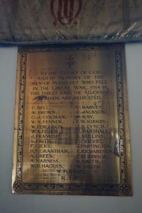 from St Marks Street serving in the war. This may have been Britain’s first War memorial. A similar Roll of Honour was unveiled at St Thomas’ Church, Campbell Street, Hull (HDM 15/11/1915).