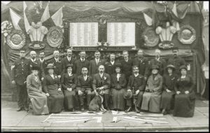 Hull’s world famous Reckitt’s firm, saw 70 of its men join at the outbreak of war and by 1917, 820 men had enlisted. A total of 1,108 Reckitt employees, served from its world wide workforce, with 153 employees killed and 50% of the remainder wounded or disabled. In tribute to their service, Sir James Reckitt erected a memorial fountain in the grounds of its Hull Office, at Dansom Lane, which still stands today. See – https://ww1hull.com/the-financial-cost-of-ww1/hull-in-the-first-world-war/reckitts-ww1/